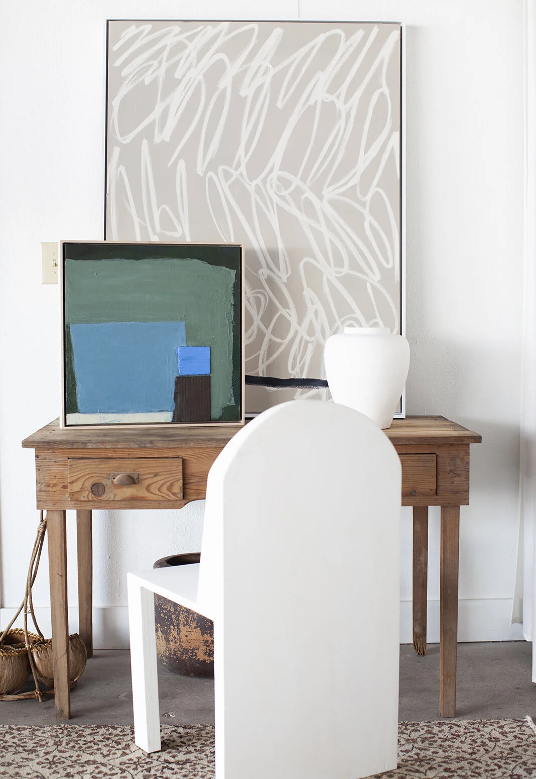 Fort Worth native, Heather Essian is an abstract artist known for her beautiful color palettes that are full of movement and bold brush strokes. She's been an artist all of her life and has found her favorite medium to be painting. She is passionate about creating art with meaning and works closely with her collectors to accomplish this. You can find her painting in her tiny sun porch studio in the historic home that she shares with her husband, Jim and their three young daughters.